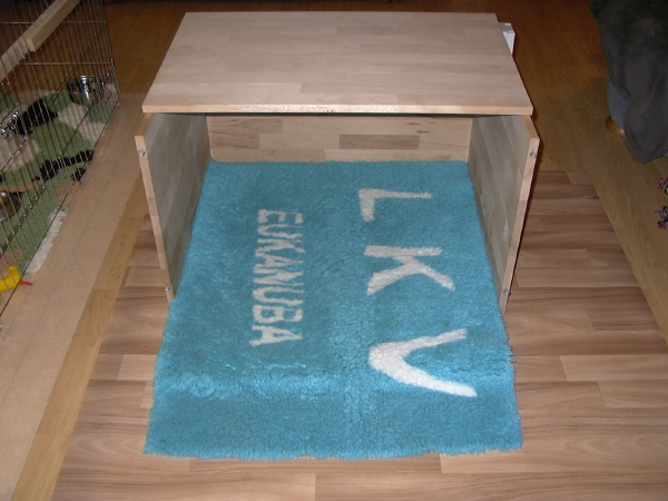 Auf die Fliesen kommt dann noch ein Vetbed, damit es noch kuscheliger wird. Der Deckel ist ebenfalls im Bedarfsfall wegklappbar.
